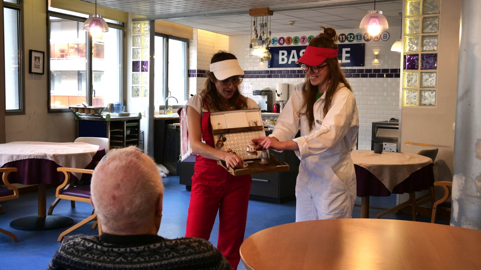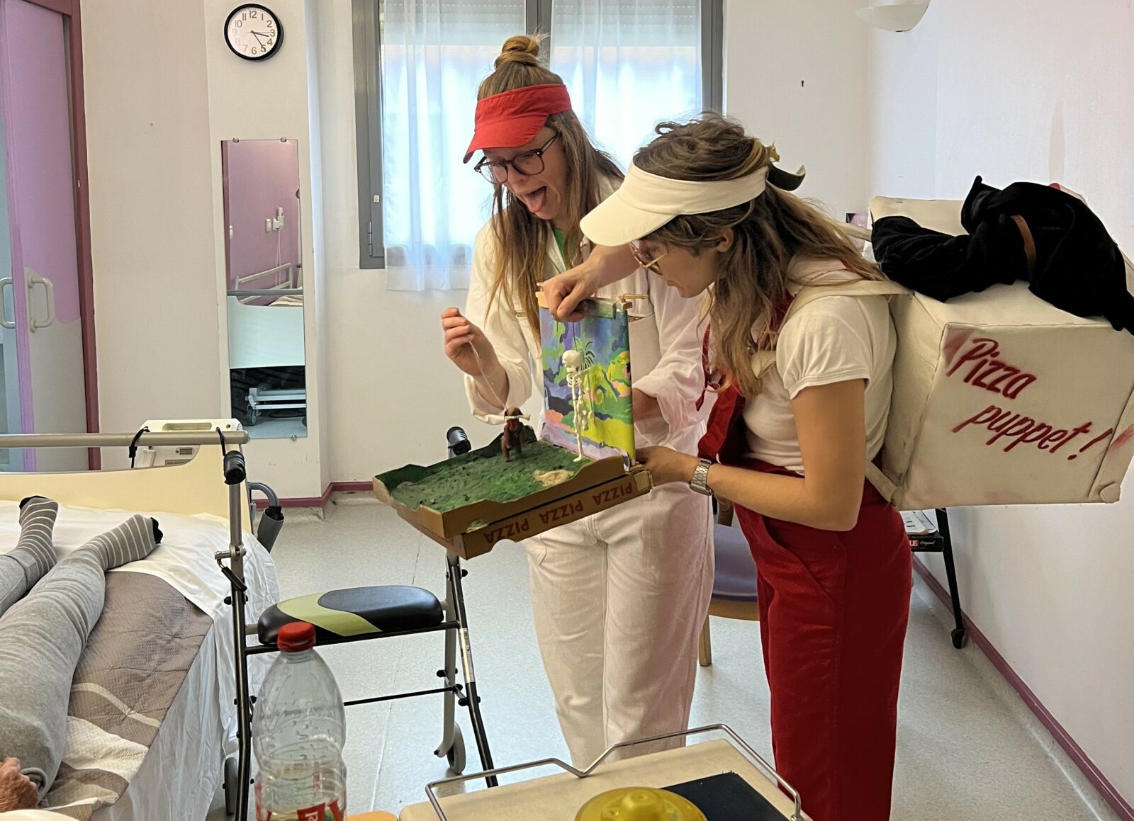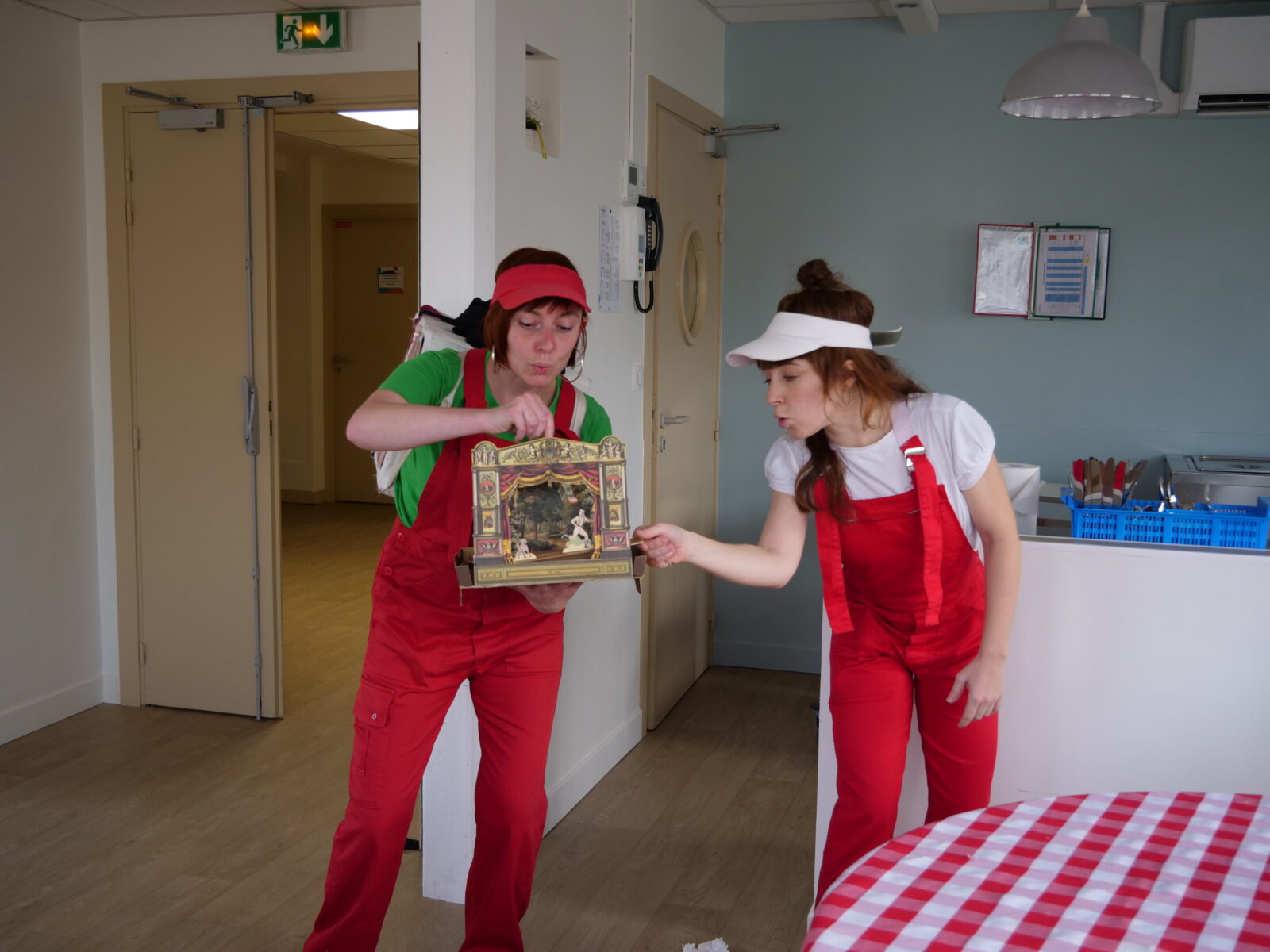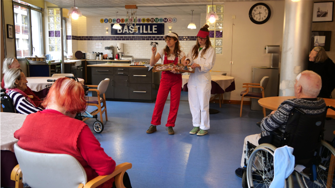 Des livreuses débarqueront avec une pile de pizzas, proposeront un menu à quelques résident·e·s de l’EHPAD Bastille, puis livreront la pizza choisie, assaisonnée d’un virelangue bien articulé. Les virelangues ? Ce sont ces petites comptines, amusantes à prononcer et difficiles à déchiffrer. À chaque boite à pizza son mini spectacle et à chaque mini spectacle son type de marionnette : théâtre d’objet, théâtre d’ombre, muppet, marionnette à gaine, théâtre de papier…